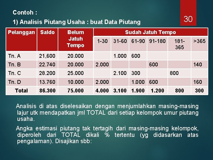 Misal untuk melakukan crosscheck dan analisis piutang sepanjang Q1 kuartal pertama tahun ini. Piutang usaha timbul karena penjualan kredit yang diberikan perusahaan kepada para pelanggannya. Daftar Isi Contoh Soal dan Cara Menghitung Analisis Umur Piutang Contoh Soal Analisis Umur Piutang.